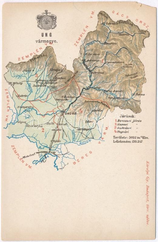 Ung vármegye térképe. Kiadja Károlyi Gy. / Uzská zupa / Ung County map... https://www.darabanth.com/de/344-Fernauktion/344.0/Ansichtskarten/Landkarte~1500084/Ung-varmegye-terkepe-Kiadja-Karolyi-Gy-Uzska-zupa-Ung-County-map-EM~II1953041