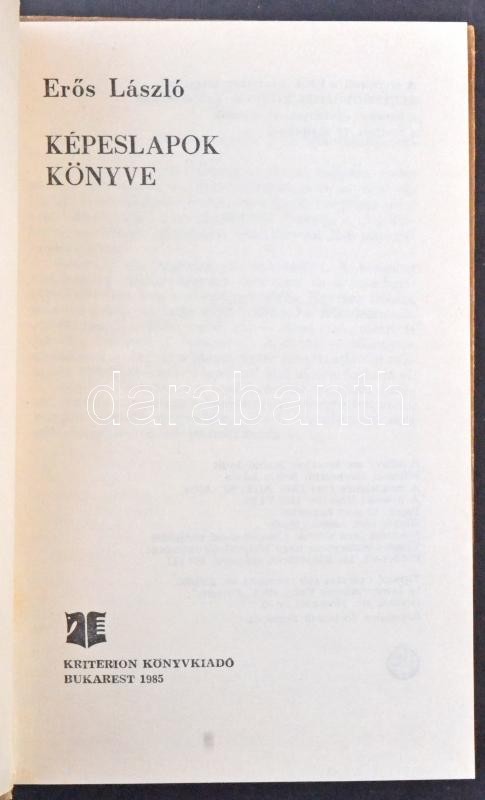 Erős László: Képeslapok könyve. Bukarest, 1985, Kriterion Könyvkiadó. ... https://www.darabanth.com/de/344-Fernauktion/344.0/Ansichtskarten/Literatur-uber-Postkarten~1500001/Eros-Laszlo-Kepeslapok-konyve-Bukarest-1985-Kriterion-Konyvkiado-Kiadoi-felvaszon-ko~II1921317