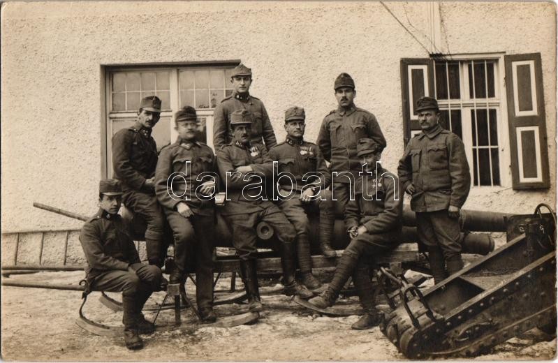 A megsemmisült ágyúk még használható alkatrészeit szántalpakon szerelésre szállítják / WWI Austro-Hungarian K.u.K. military, usable parts of the destroyed cannons get transported to an assembly plant. photo