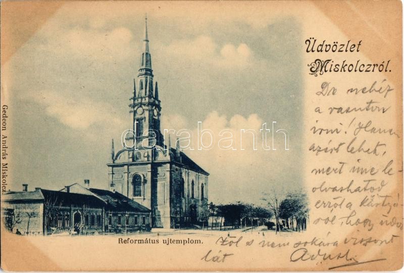 1900 Miskolc, Református új templom. Kiadja Gedeon András https://www.darabanth.com/de/344-Fernauktion/344.0/Ansichtskarten/Ungarn~1500004/1900-Miskolc-Reformatus-uj-templom-Kiadja-Gedeon-Andras~II1951538