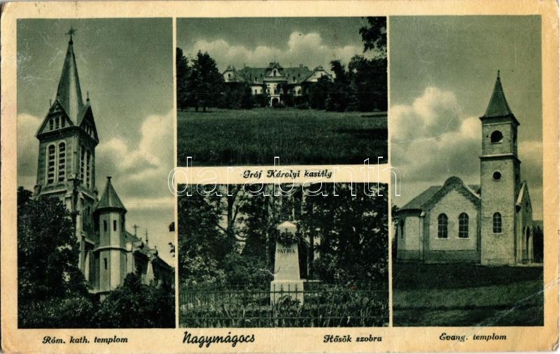 Beschreibung: Nagymágócs, Római katolikus templom, Hősök szobra, emlékmű, Evangélikus templom, Gróf Károlyi kastély (EB)