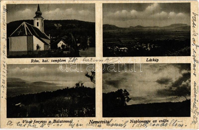 Nemesvita, Római katolikus templom, vitai fenyves a Balatonnál, látkép... https://www.darabanth.com/de/344-Fernauktion/344.0/Ansichtskarten/Ungarn~1500004/Nemesvita-Romai-katolikus-templom-vitai-fenyves-a-Balatonnal-latkep-naplemente-az-erdon-Ki~II1941732