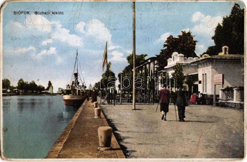 Siófok, Gőzhajó kikötő (kopott sarkak / worn corners) https://www.darabanth.com/de/344-Fernauktion/344.0/Ansichtskarten/Ungarn~1500004/Siofok-Gozhajo-kikoto-kopott-sarkak-worn-corners~II1941208