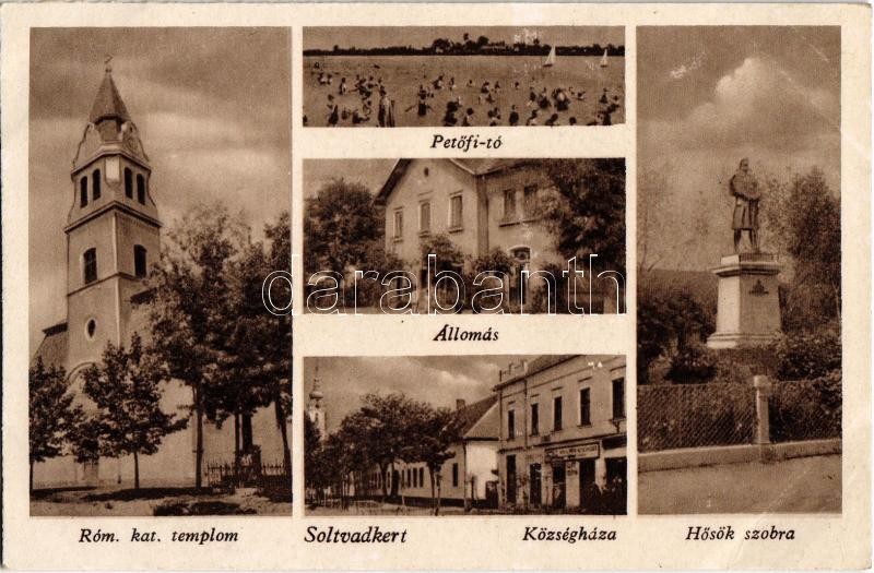 Beschreibung: Soltvadkert, Római katolikus templom, Petőfi tó, Vasútállomás, Községháza, üzlet, Hősök szobra, emlékmű. Kiadja Genedits Pálné (EB)