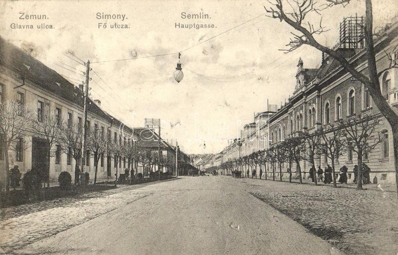 Beschreibung: Zimony, Semlin, Zemun; Fő utca / Glavna ulica / main street (tűnyomok / pin marks)