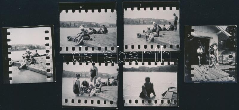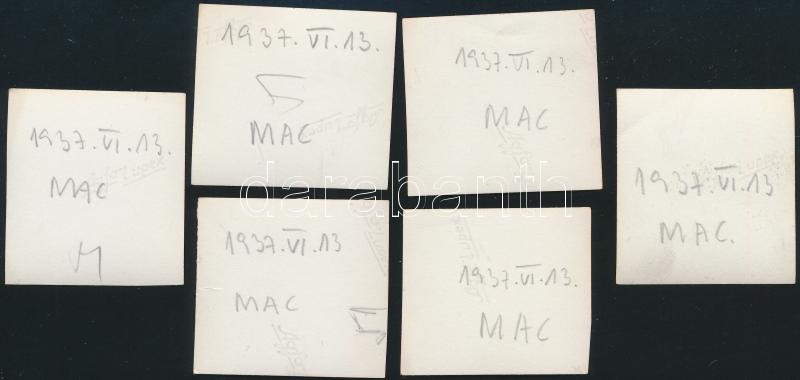 Beschreibung: 1937 a Magyar Atlétikai Club a Margitsziget déli részén, 6 db fotó, hátuljukon feliratozva, 4×4 cm