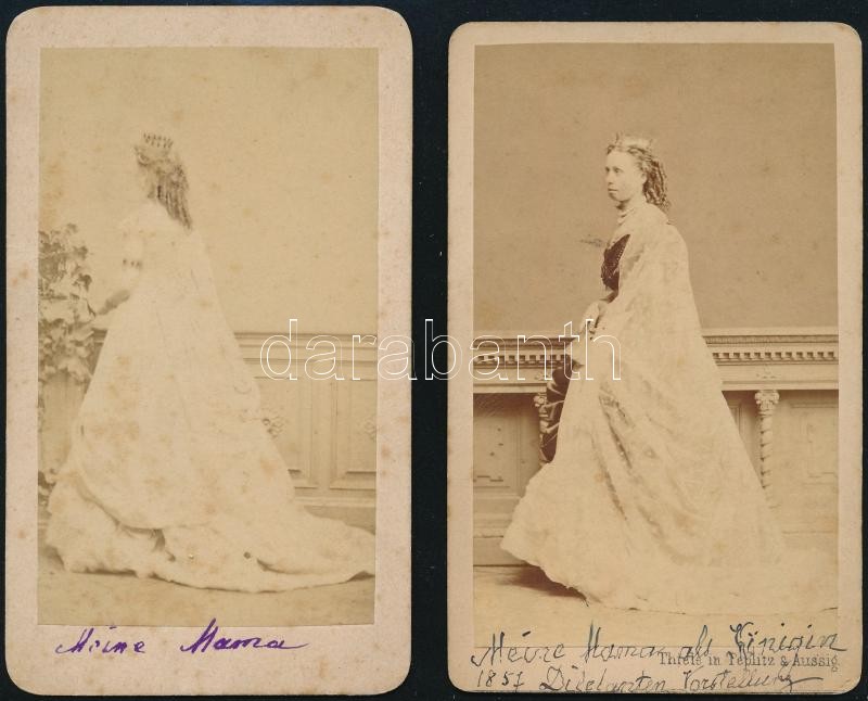 cca 1880-1890 Előkelő hölgy keményhátú fotói, 2 db, H. Thieler (Teplit... https://www.darabanth.com/de/344-Fernauktion/344.0/Fotografie/Foto~1/cca-1880-1890-Elokelo-holgy-kemenyhatu-fotoi-2-db-H-Thieler-TeplitzAussig-es-J-W-Rau~II1944475