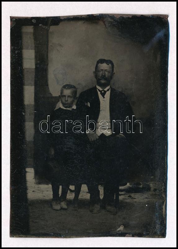 Beschreibung: cca 1900 Ferrotípia (vaslemezre készült, vásári gyorsfénykép), 9x6 cm