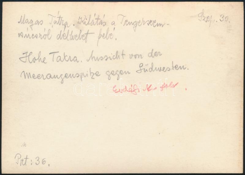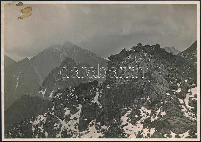 cca 1910 Magas-Tátra, kilátás a Tengerszem-csúcsról délkelet felé, Erdélyi Mór felvétele, hátulján feliratozva, 11,5×16 cm / cca 1910 Vysoké Tatry, the view from the Rysy towards southeast, with notes on its back, 11,5×16 cm