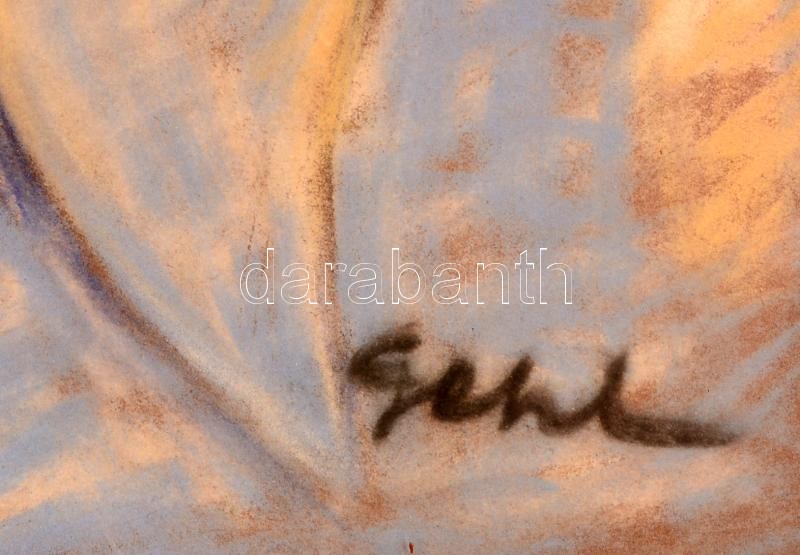 Beschreibung: Géhl Zoltán (1888-1954): Nagypapa az unokával. Pasztell, papír, jelzett, üvegezett keretben, 34×48 cm