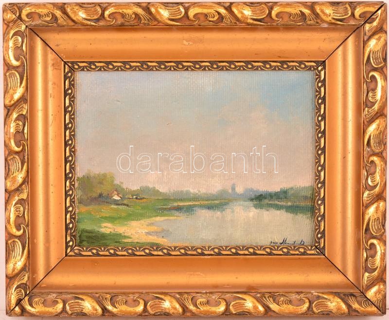 Olvashatatlan jelzéssel: Folyó part házzal. Olaj, vászon-karton, keret... https://www.darabanth.com/de/344-Fernauktion/344.0/Gemalde-und-Grafiken/Gemalde-und-Grafiken~2/Olvashatatlan-jelzessel-Folyo-part-hazzal-Olaj-vaszon-karton-keretben-17C39722-cm~II1943668