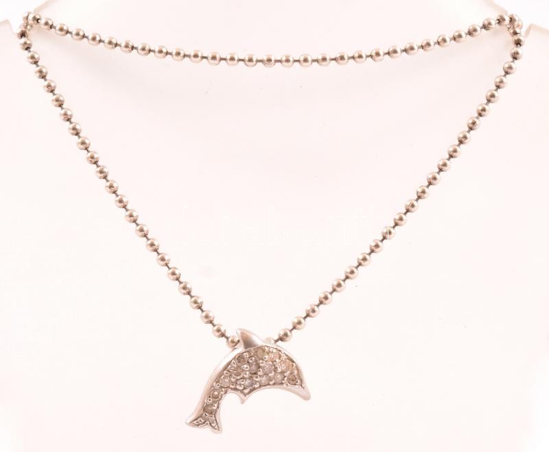 Beschreibung: Ezüst(Ag) nyaklánc delfines köves medállal, jelzett, h: 38 cm, bruttó: 6,8 g