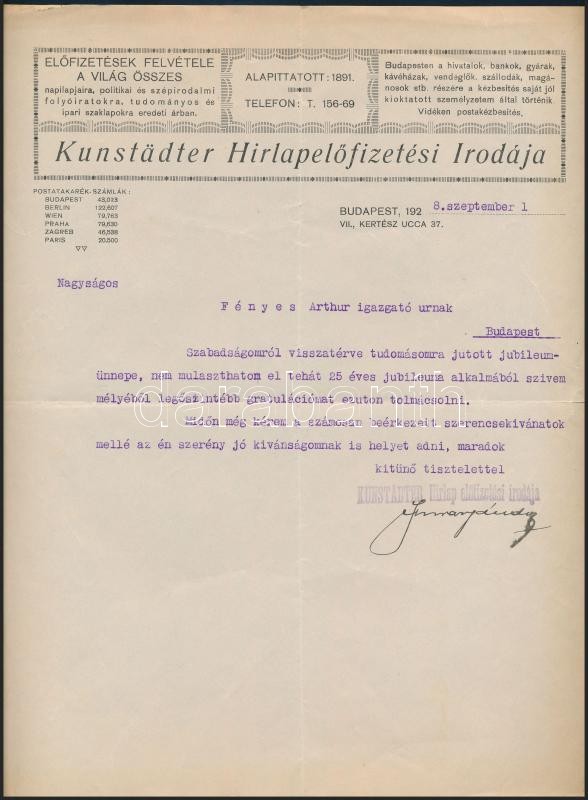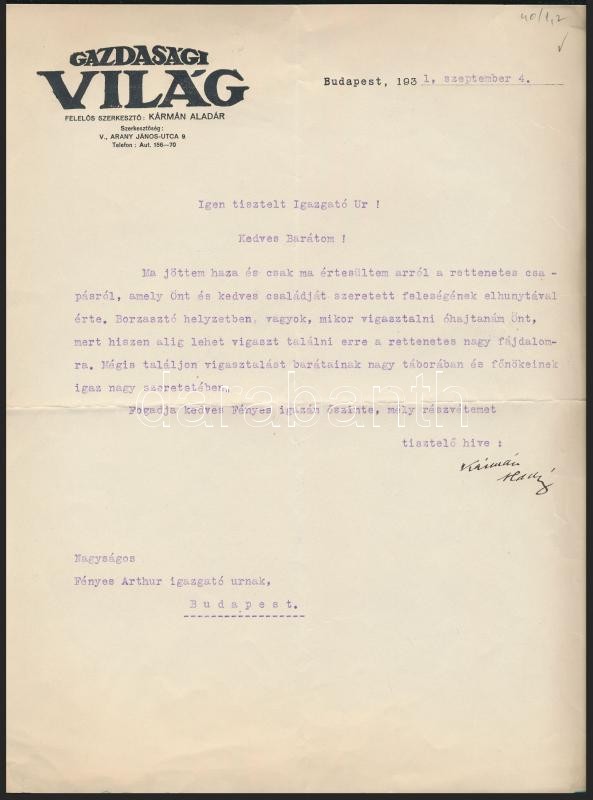 Beschreibung: 1928-1931 Újságok fejléces levélpapírjaira írt levelek (Magyarság, Múlt és Jövő, Kunstädter, Gazdasági Világ)