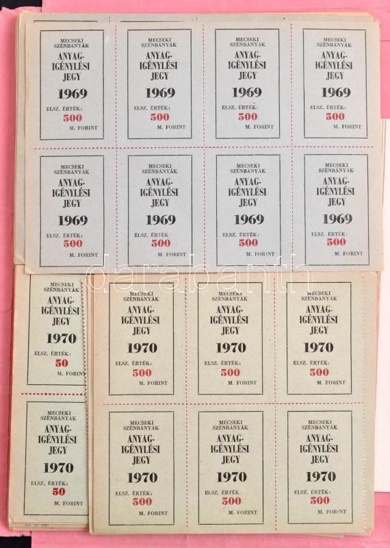Beschreibung: 1969-1980 A Mecseki Szénbányák anyagigénylési jegyei, összesen 1097 db , 1 milliótól - 500 millióig.