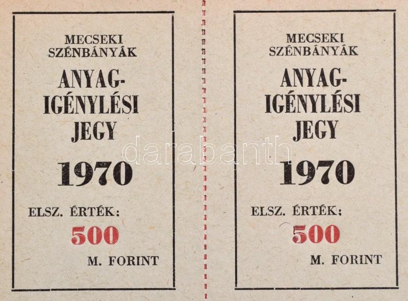 1969-1980 A Mecseki Szénbányák anyagigénylési jegyei, összesen 1097 db... https://www.darabanth.com/de/344-Fernauktion/344.0/Kunst-Dokumente-andere-Sammelgebiete/Dokument~19/1969-1980-A-Mecseki-Szenbanyak-anyagigenylesi-jegyei-osszesen-1097-db-1-milliotol-500-m~II1948126