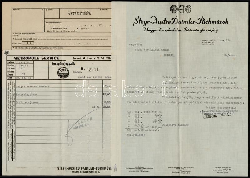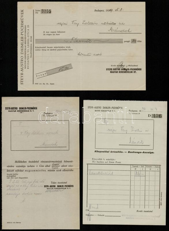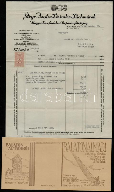 cca 1930 Stayr-Austro-Daimler számlák, üzleti levelek kb 10 db https://www.darabanth.com/de/344-Fernauktion/344.0/Kunst-Dokumente-andere-Sammelgebiete/Dokument~19/cca-1930-Stayr-Austro-Daimler-szamlak-uzleti-levelek-kb-10-db~II1952015