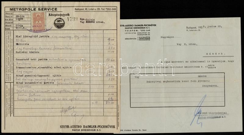 Beschreibung: cca 1930 Stayr-Austro-Daimler számlák, üzleti levelek kb 10 db