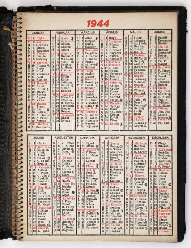 Beschreibung: 1944 Csillogó festékek reklámos határidőnapló és regiszteres telefonkönyv.