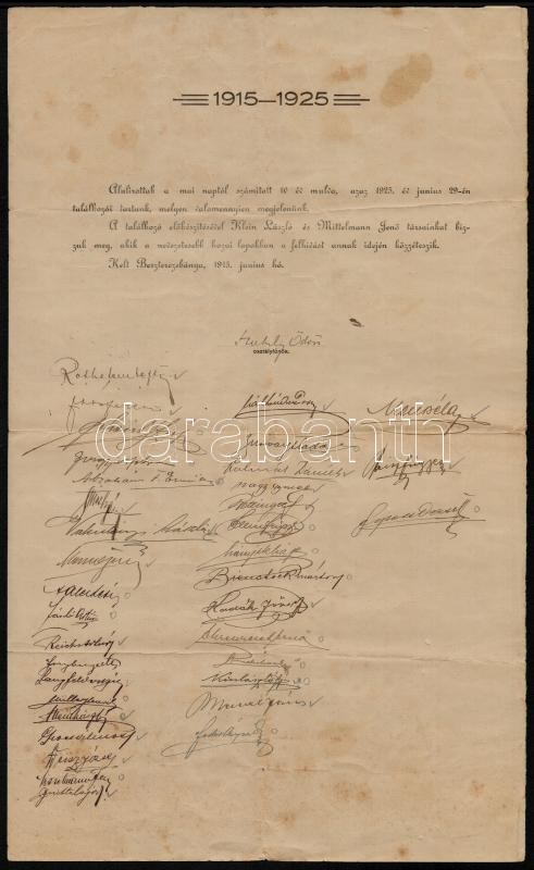 1915 Besztercebánya, majdani tízéves osztálytalálkozóról tett fogadalo... https://www.darabanth.com/de/344-Fernauktion/344.0/Kunst-Dokumente-andere-Sammelgebiete/Historische-Dokumenten-Handschriften~20/1915-Besztercebanya-majdani-tizeves-osztalytalalkozorol-tett-fogadalom-az-osztalyfonok-C3~II1953596