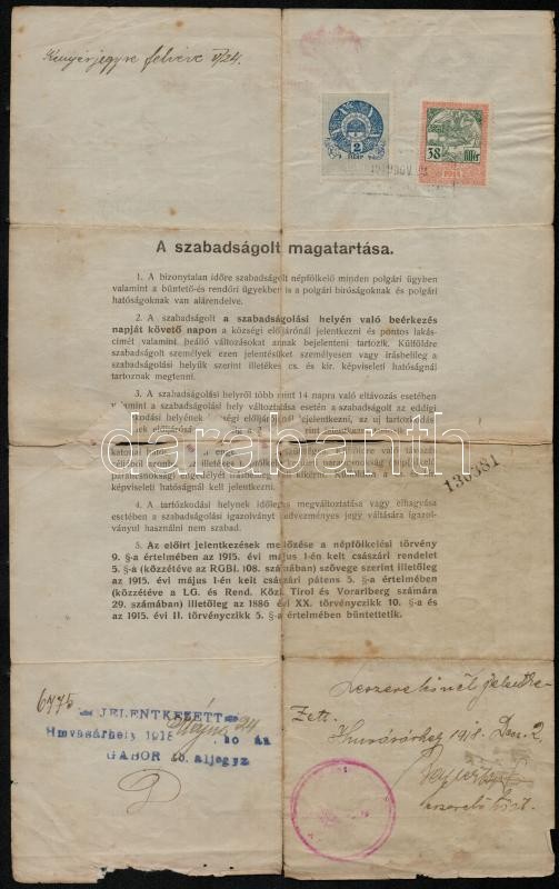 1918 Népfölkelő szabadságolási igazolvány, sérült. https://www.darabanth.com/de/344-Fernauktion/344.0/Kunst-Dokumente-andere-Sammelgebiete/Militaria~29/1918-Nepfolkelo-szabadsagolasi-igazolvany-serult~II1940590
