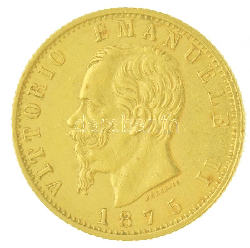Olaszország 1875R 20L Au "II. Viktor Emánuel" (6,44g/0.900) ... https://www.darabanth.com/de/344-Fernauktion/344.0/Numismatik/Goldmunzen-und-Gedenkmunzen~1000011/Olaszorszag-1875R-20L-Au-II-Viktor-Emanuel-6-44g0900-T2-Italy-1875R-20-Lire-Au-Vittorio-~II1943787