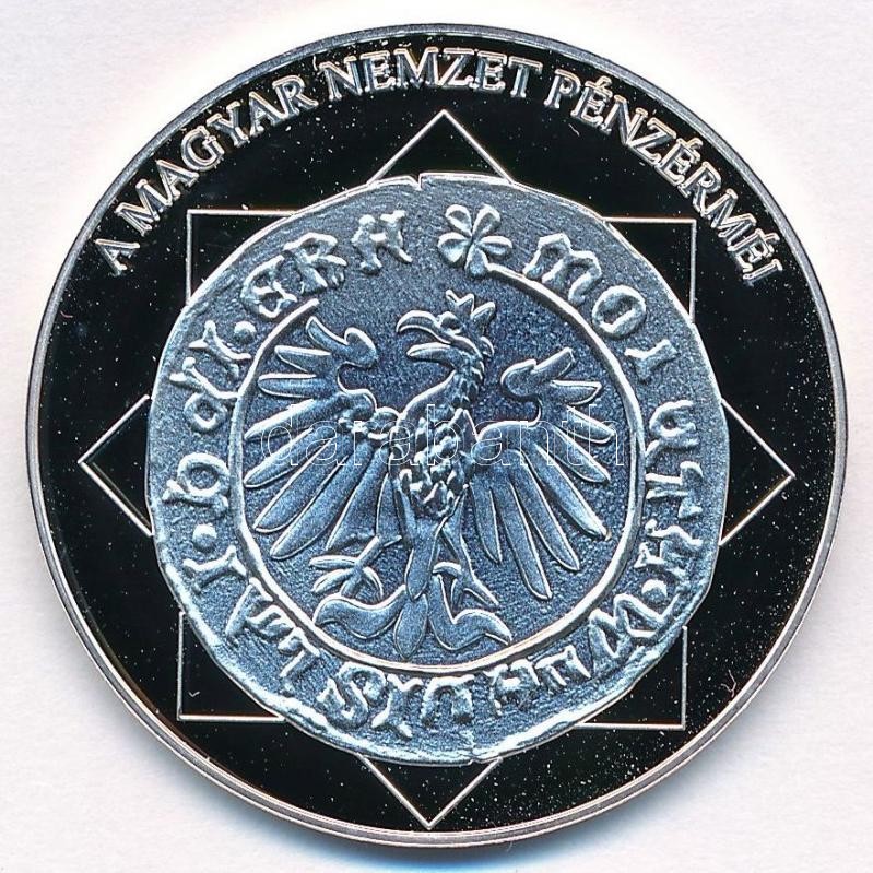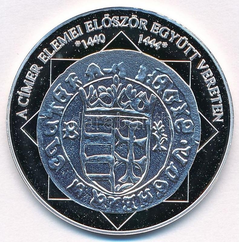Beschreibung: DN "A magyar nemzet pénzérméi - A címer elemei először együtt egy vereten 1440-1444" Ag emlékérem tanúsítvánnyal (10,37g/0.999/35mm) T:PP