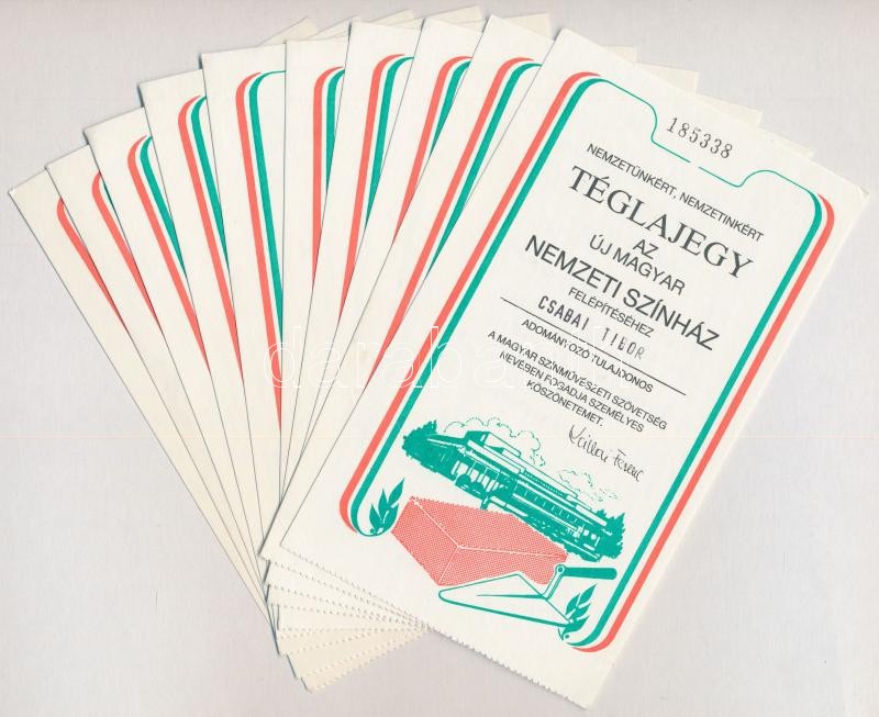 Beschreibung: 1987. 100Ft "Nemzeti Téglajegy - Téglajegy az új magyar Nemzeti Színház felépítéséhez" (10x) sorszámkövetők T:I