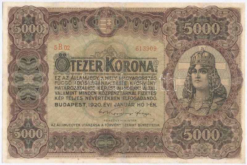 1920. 5000K "Orell Füssli Zürich" piros sorozat- és sorszám ... https://www.darabanth.com/de/344-Fernauktion/344.0/Numismatik/Ungarische-Banknoten~1000007/1920-5000K-Orell-Fussli-Zurich-piros-sorozat-es-sorszam-TIII-restauralt-Adamo-K38~II1941243