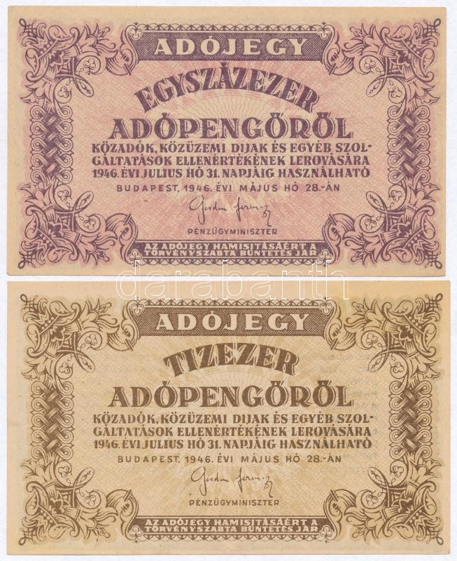 1946. 10.000AP + 100.000AP T:I https://www.darabanth.com/de/344-Fernauktion/344.0/Numismatik/Ungarische-Banknoten~1000007/1946-10000AP-plus-100000AP-TI~II1947838