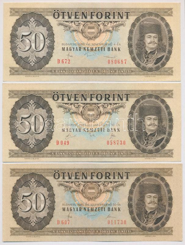 Beschreibung: 1980. 50Ft + 1986. 50Ft + 1989. 50Ft T:II,III szép papír