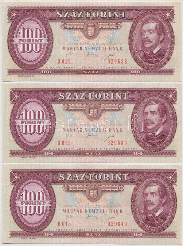 1995. 100Ft (3x) sorszámkövetők, nyomdai papírráncokkal T:I,I-
