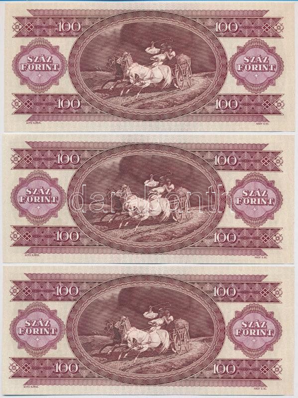 Beschreibung: 1995. 100Ft (3x) sorszámkövetők, nyomdai papírráncokkal T:I,I-