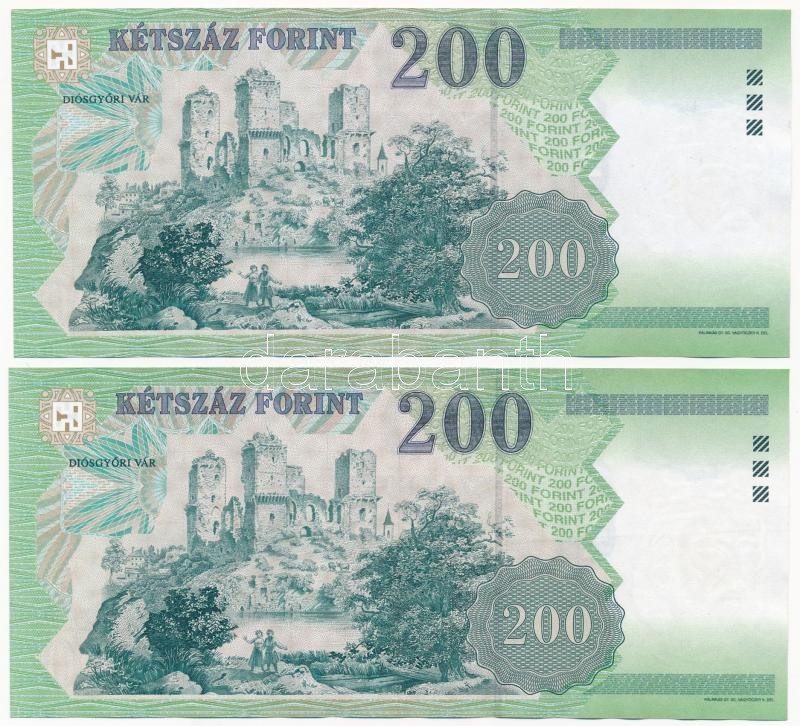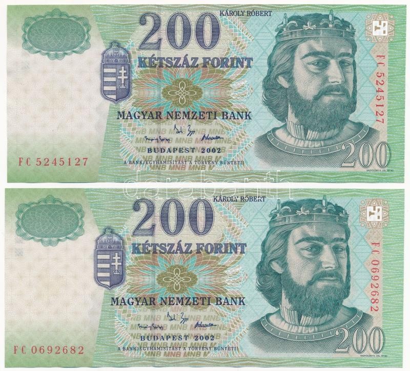 2002. 200Ft "FC" (2x) T:I https://www.darabanth.com/de/344-Fernauktion/344.0/Numismatik/Ungarische-Banknoten~1000007/2002-200Ft-FC-2x-TI~II1940620