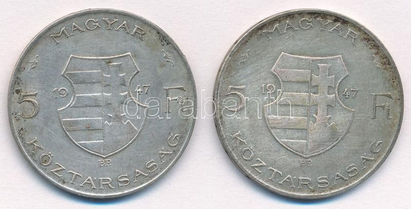 1947. 5Ft Ag "Kossuth" (2x) T:2-,3