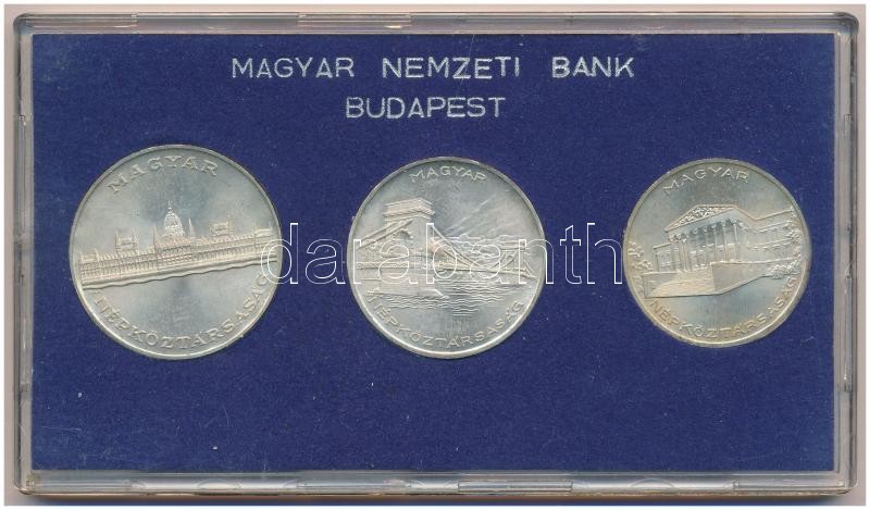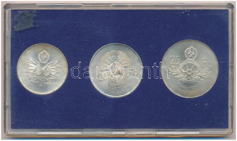 Beschreibung: 1956. 10Ft + 20Ft + 25Ft Ag "10 éves a Forint" sor kék MNB tokban T:1