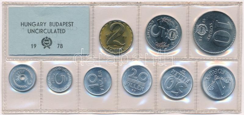 1978. 2f-10Ft (9xklf) érmés forgalmi sor fóliatokban T:1 Adamo FO11 https://www.darabanth.com/de/344-Fernauktion/344.0/Numismatik/Ungarische-Munzen-und-Munzen-mit-ungarischem-Munzzeichen~1000008/1978-2f-10Ft-9xklf-ermes-forgalmi-sor-foliatokban-T1-Adamo-FO11~II1930691