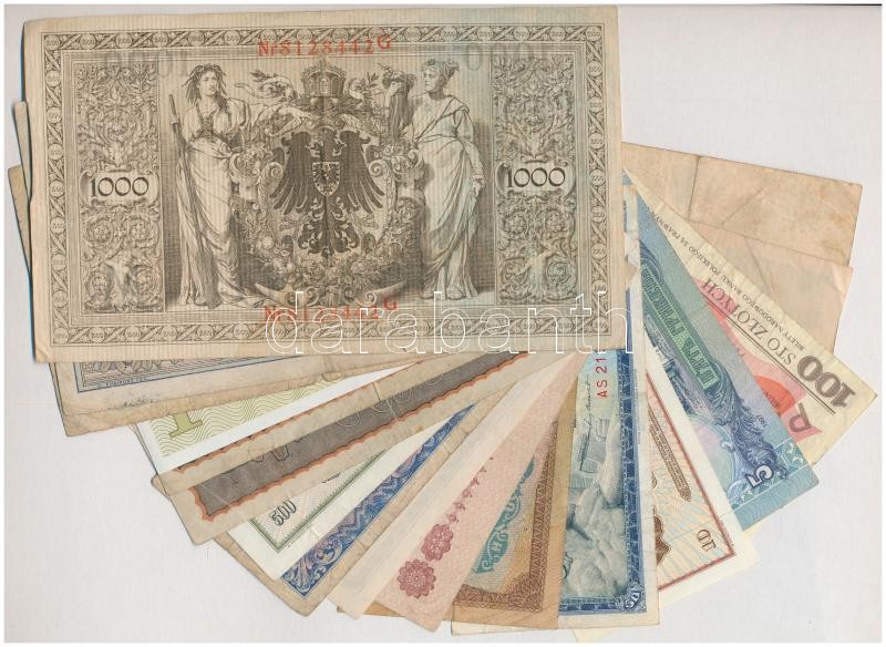 18db-os vegyes külföldi bankjegy tétel, közte Jugoszlávia, Románia, Weimari Köztársaság T:III,III-