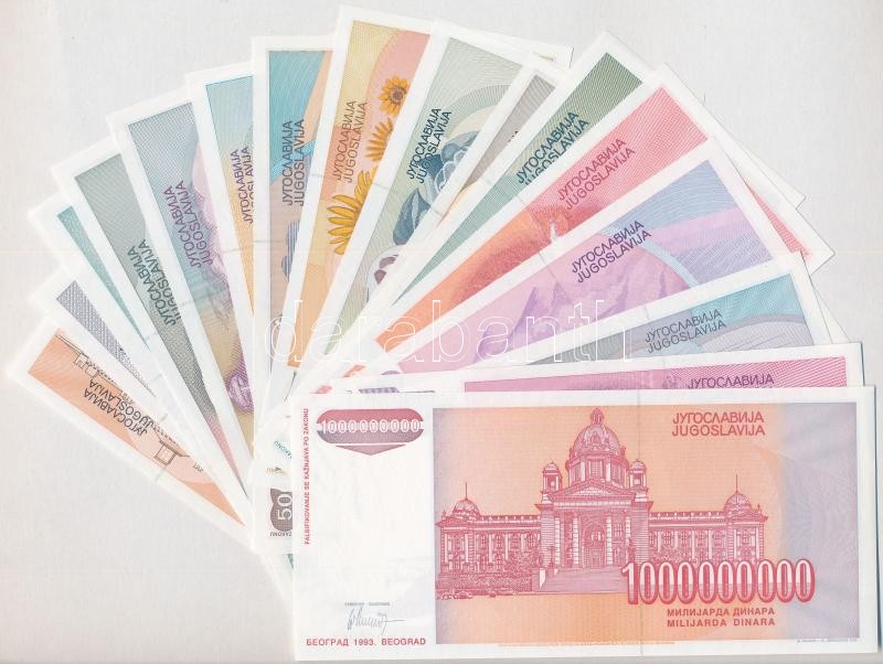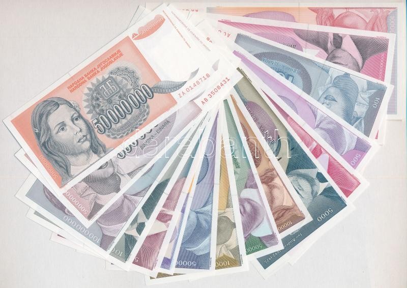 Yugoslavia 1992. 100 Dinara + 500 Dinara + 1000 Dinara + 5000 Dinara + 10.000 Dinara + 50.000 Dinara + 1993. 100.000 Dinara + 500.000 Dinara + 1.000.000 Dinara + 5.000.000 Dinara + 10.000.000 Dinara + 50.000.000 Dinara + 100.000.000 Dinara + 500.000.000 Dinara + 1.000.000.000 Dinara + 10.000.000.000 Dinara C:UNC
