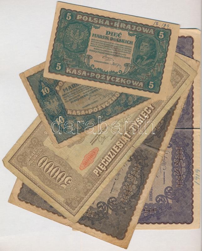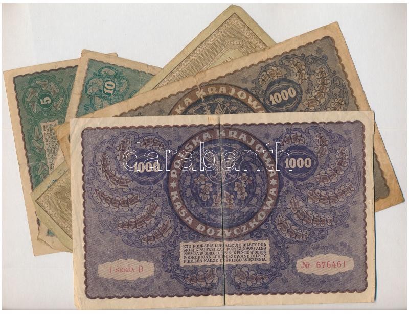 Lengyelország 1919. 5M + 10M + 1000M (2x) + 1922. 50.000M T:III,III- kis ly.