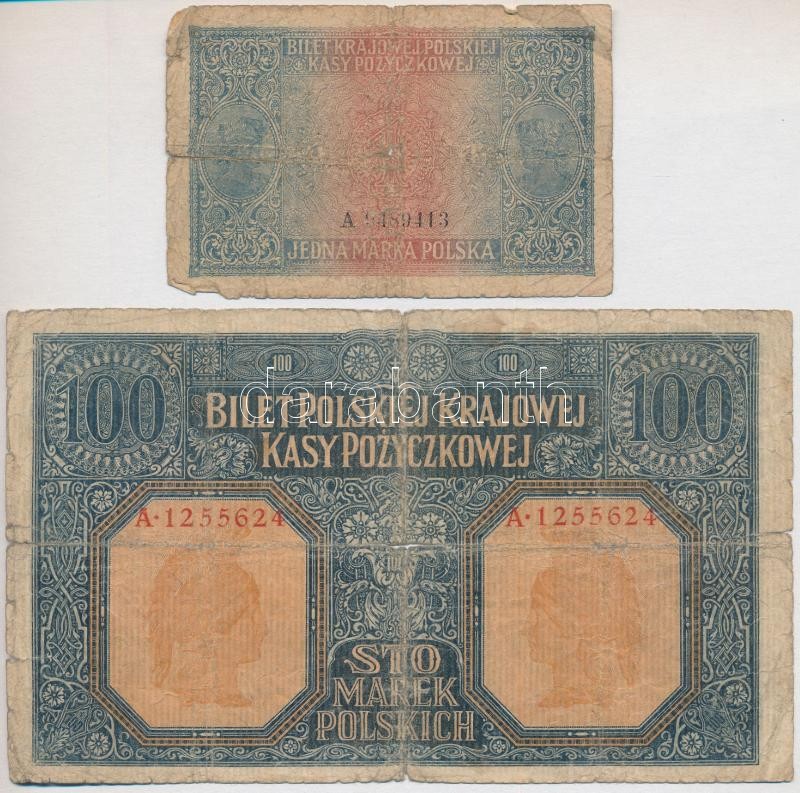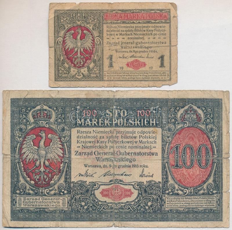 Poland / German occupation, WWI 1916. 100 Marek + 1917. 1 Marka C:VG,G