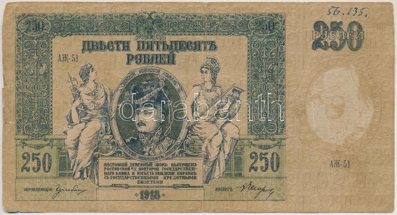Russian Civil War / South Russia / Army of Denikin and Wrangel 1918. 250 Rubles C:F,VG