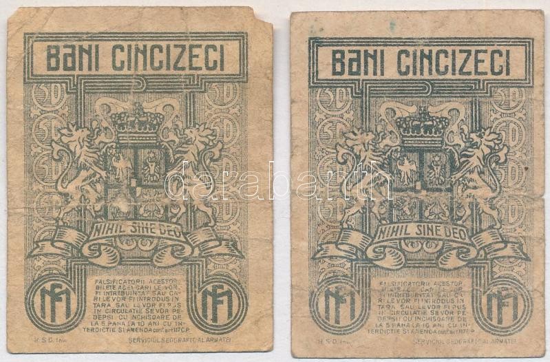Romania 1917. 50 Bani (2x) C:F,VG https://www.darabanth.com/de/344-Fernauktion/344.0/Numismatik/Weltweit-Banknoten~1000012/Romania-1917-50b-2x-TIII-III--Romania-1917-50-Bani-2x-CF-VG~II1946448