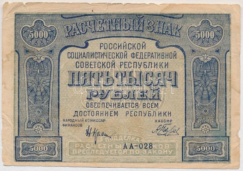 Szocialista Szövetségi Szovjet Köztársaság 1921. 5000R T:III,III-