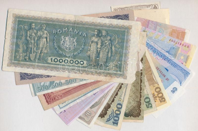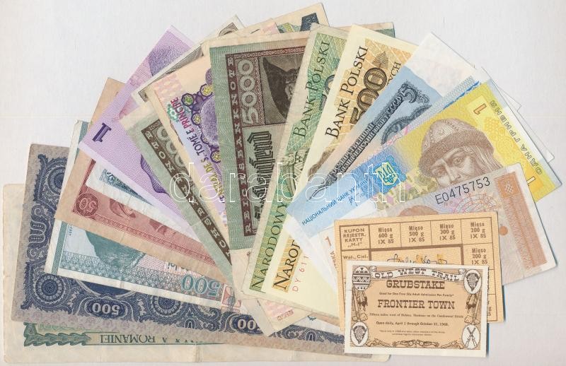 Vegyes 20db-os papírpénz tétel a világ minden tájáról, mind különféle, közte 1-1 darab belépő- és cukorjegy T:II-III