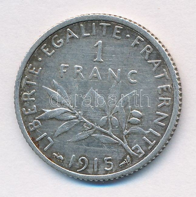 Krause K... https://www.darabanth.com/de/344-Fernauktion/344.0/Numismatik/Weltweit-Munzen~1000013/Franciaorszag-1915-1Fr-Ag-T2-France-1915-1-Franc-Ag-CXF-Krause-KM238441~II1951342