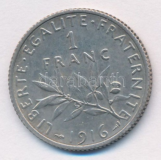 Krause KM... https://www.darabanth.com/de/344-Fernauktion/344.0/Numismatik/Weltweit-Munzen~1000013/Franciaorszag-1916-1Fr-Ag-T2-France-1916-1-Franc-Ag-CXF-Krause-KM238441~II1942332
