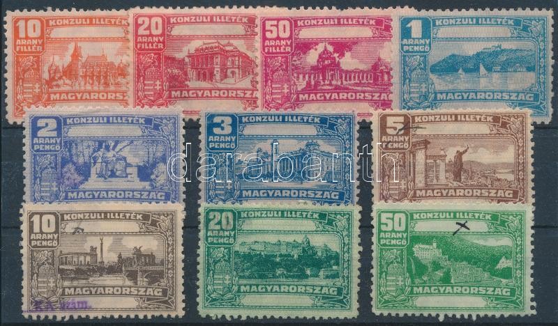 1931 Konzuli illetékbélyeg 10 db A 2-11 (23.000) https://www.darabanth.com/de/344-Fernauktion/344.0/Philatelie-und-Postgeschichte-Ungarn/Stempelmarken~18/1931-Konzuli-illetekbelyeg-10-db-A-2-11-23000~II1951383