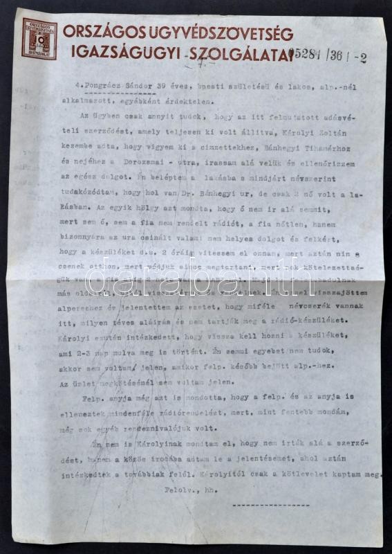 Beschreibung: 1936 Orsz. Ügyvédszövetség iratmásolat klf szignettákkal