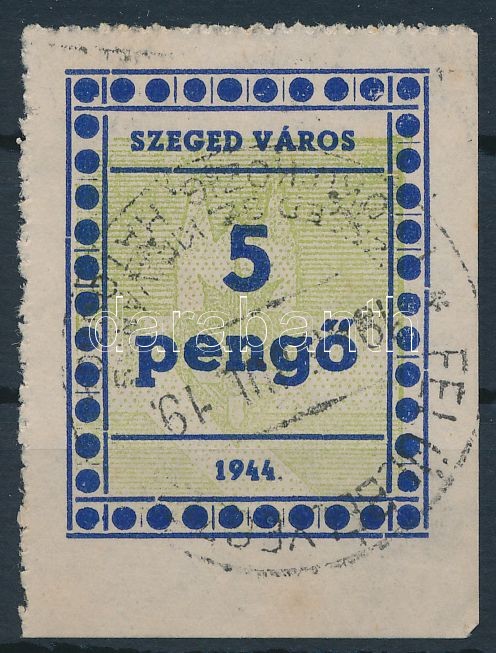 1944 Szeged város okirati illetékbélyeg 5P, egy szárú 5-ös (10.000) https://www.darabanth.com/de/344-Fernauktion/344.0/Philatelie-und-Postgeschichte-Ungarn/Stempelmarken~18/1944-Szeged-varos-okirati-illetekbelyeg-5P-egy-szaru-5-os-10000~II1945221