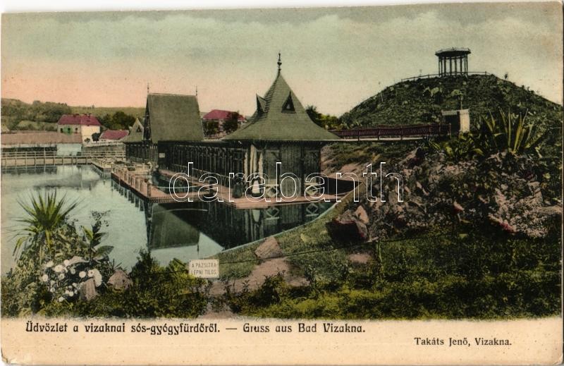 Vízakna, Salzburg, Ocna Sibiului; fürdőház, kilátó, gloriette, "A pázs... https://www.darabanth.com/de/345-Fernauktion/345.0/Ansichtskarten/Siebenburgen~2000005/Vizakna-Salzburg-Ocna-Sibiului-furdohaz-kilato-gloriette-A-pazsitra-lepni-tilos-fel~II1959337